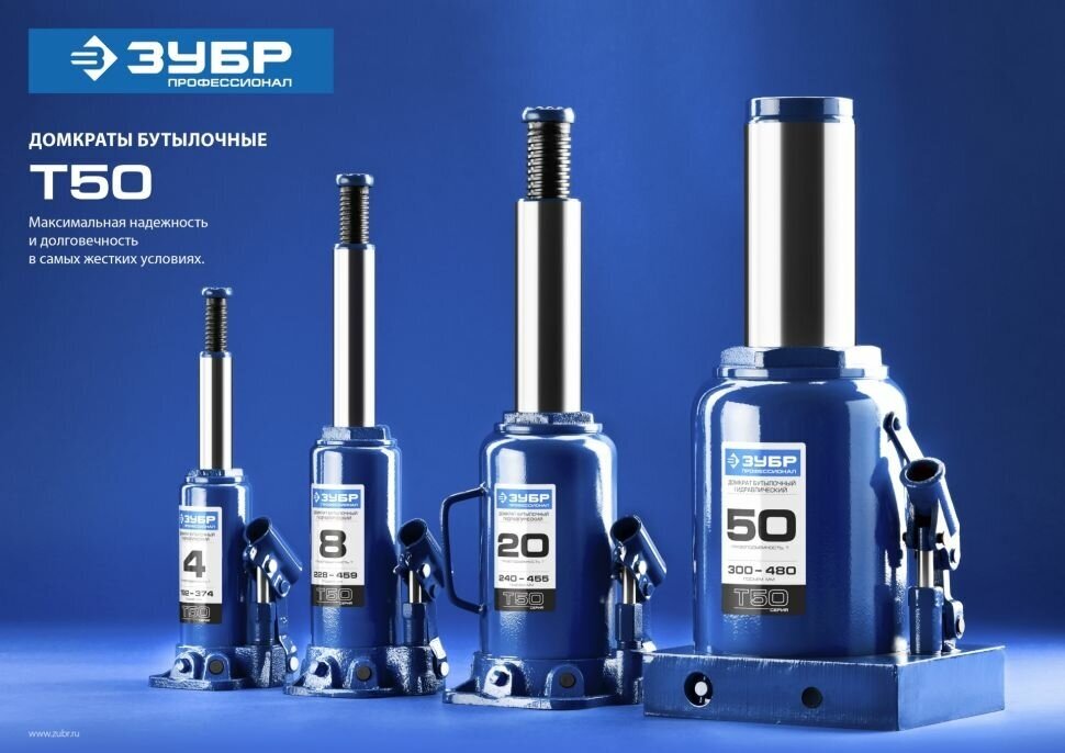 Домкрат бутылочный гидравлический ЗУБР T50 43060-12_z01 (12 т) синий