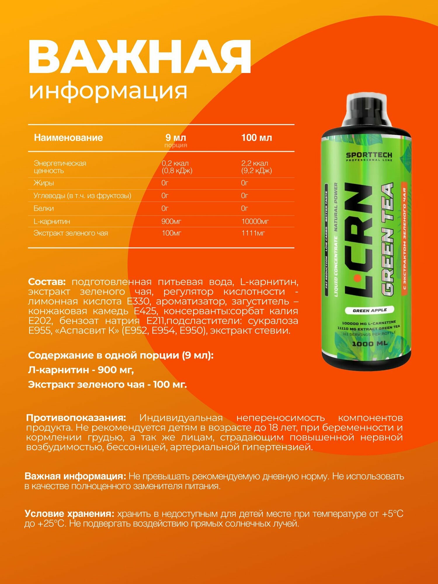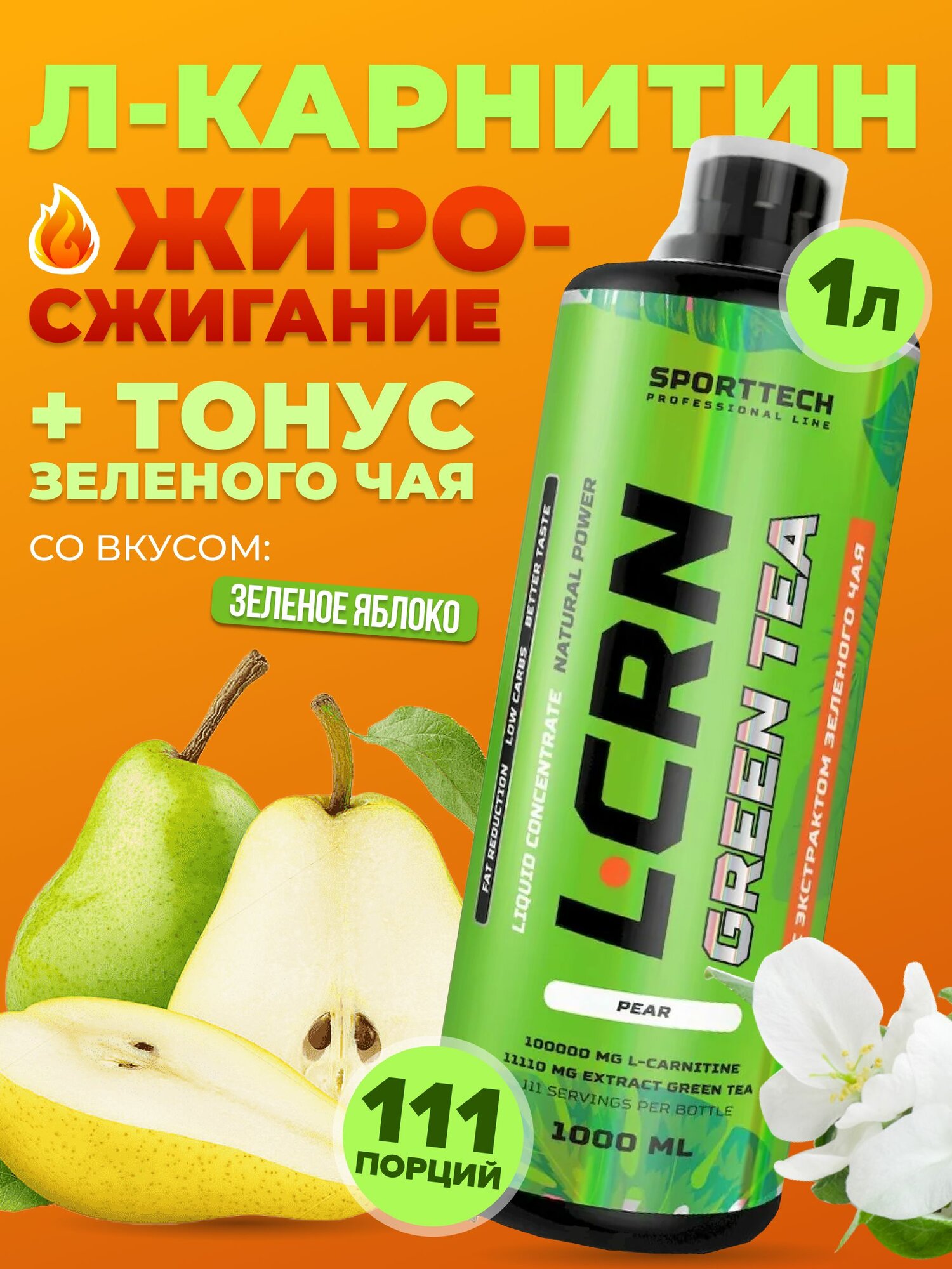 СохранитьL Карнитин + зеленый чай (концентрат) SPORTTECH груша, 1000 мл. L-Carnitine + Green Tea Liquid Concentrate, жиросжигатель для похудения интересное: