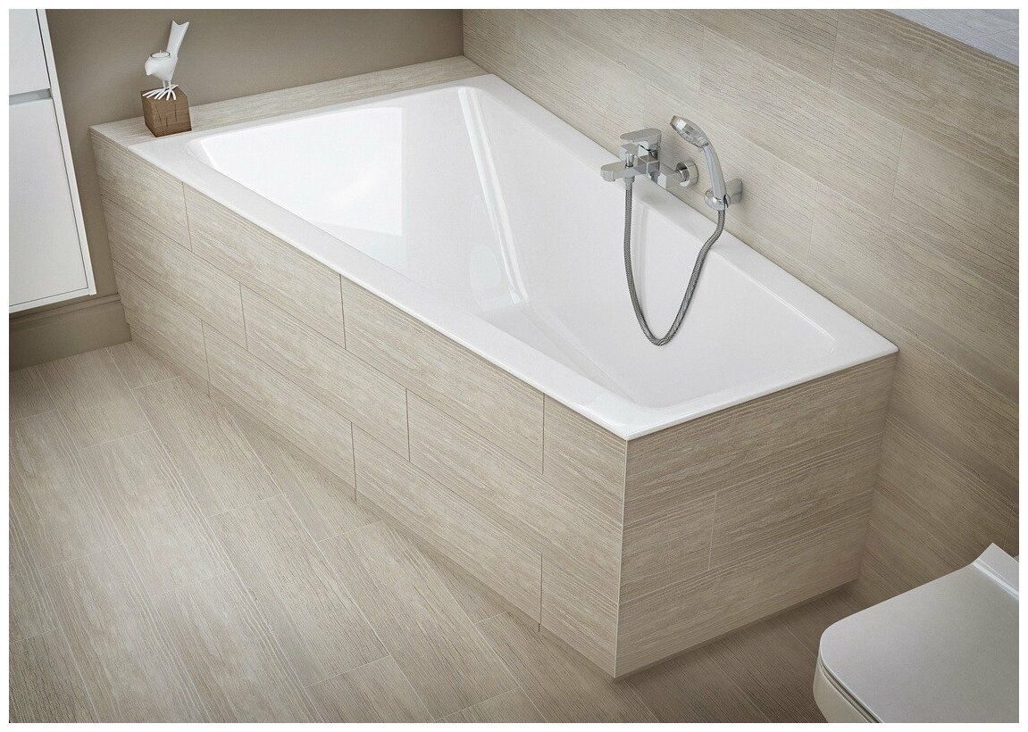 | Минусы: | Ванна идёт без ножек, и вы не сможете подобрать подходящие, придётся брать ножки для симметричной ванны и подпиливать поперечены |