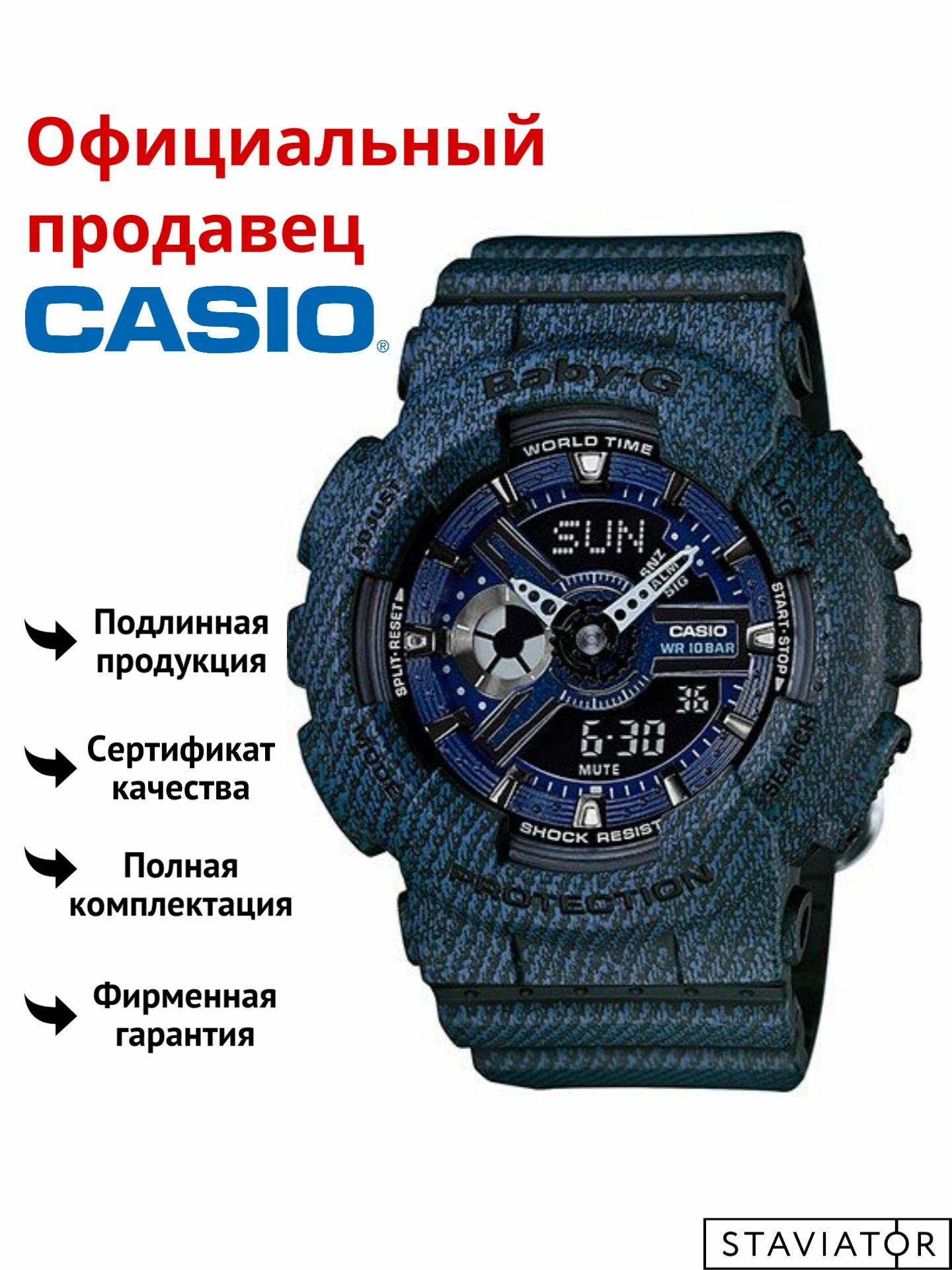 Японские наручные часы Casio Baby-G BA-110DC-2A1 с хронографом интересное: