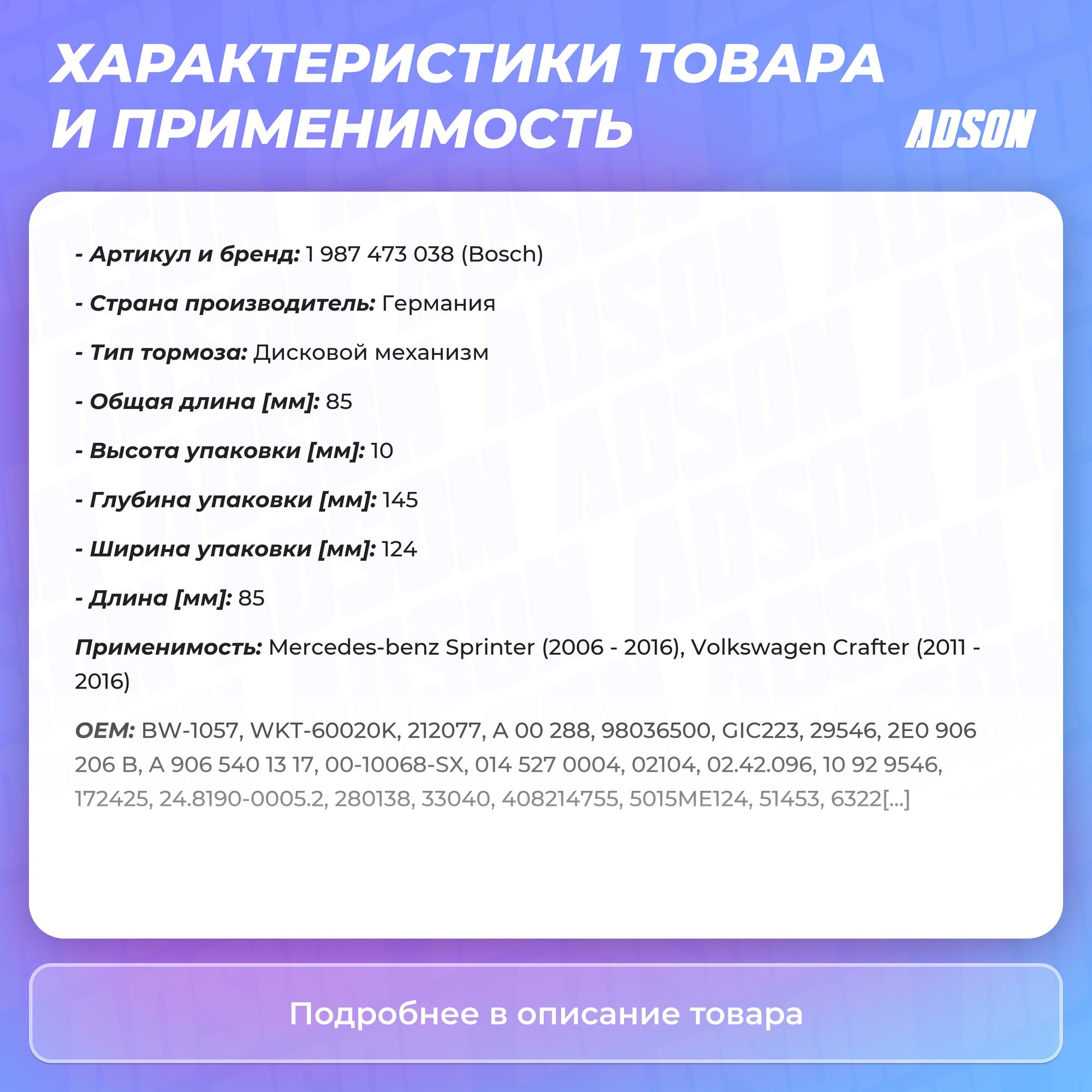 1 987 473 038_датчик Износа Колодок Задних! L=85 Mb Sprinter 2.1cdi/3.0cdi 06> Bosch арт. 1987473038
