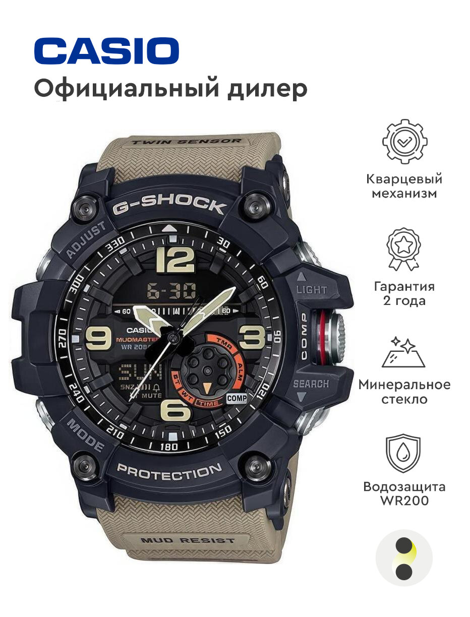 Наручные часы CASIO G-Shock GG-1000-1A5 мужские, кварцевые, будильник, хронограф, термометр, компас, секундомер, таймер обратного отсчета, водонепроницаемые, подсветка стрелок, подсветка дисплея, противоударные, черный