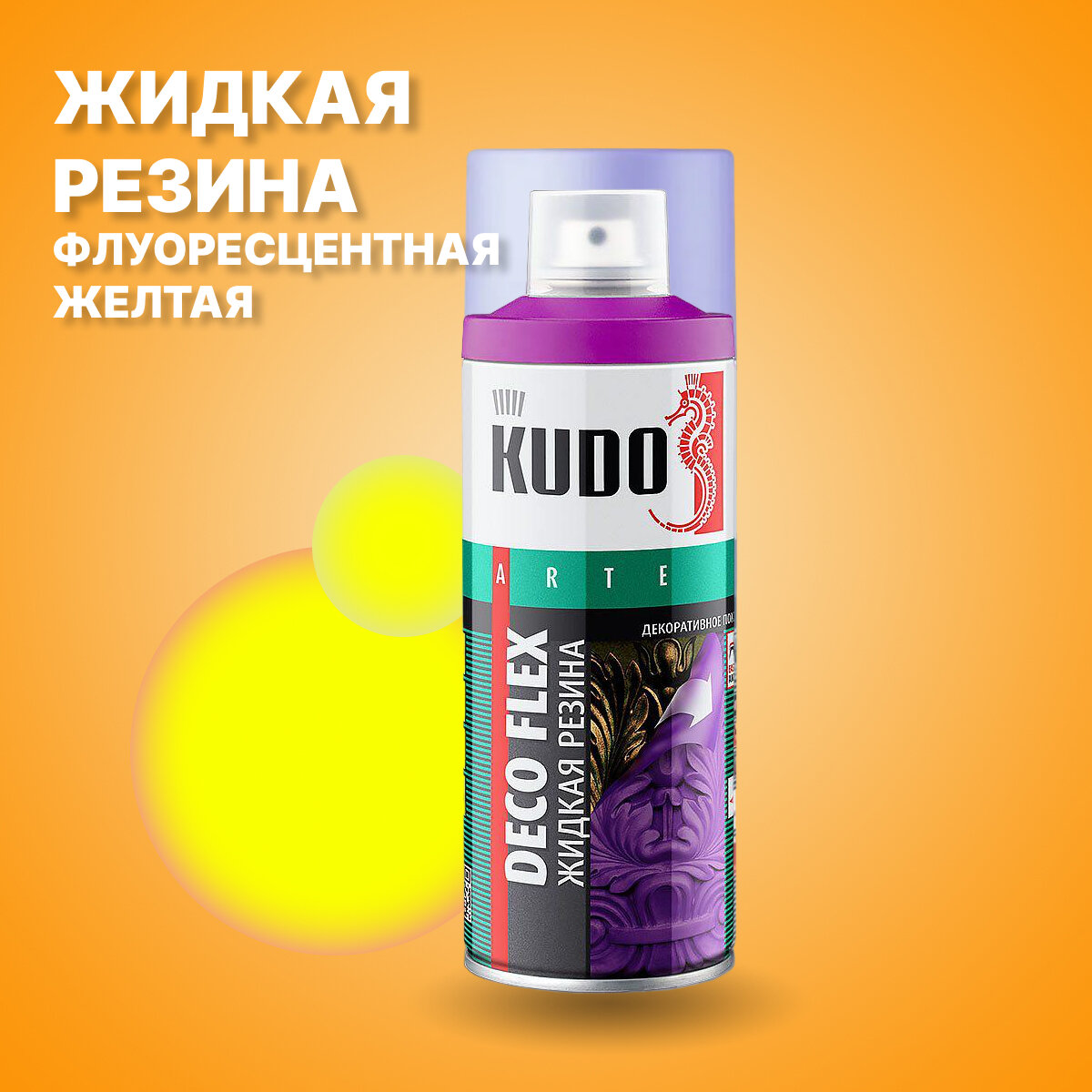 Жидкая резина флуоресцентная Желтая для декор. работ DECO FLEX KUDO аэрозоль 520мл