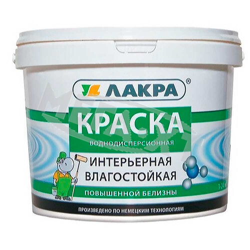 Краска водно-дисперсионная Лакра инт. влагостойкая повышенной белизны 1,3кг 9077681