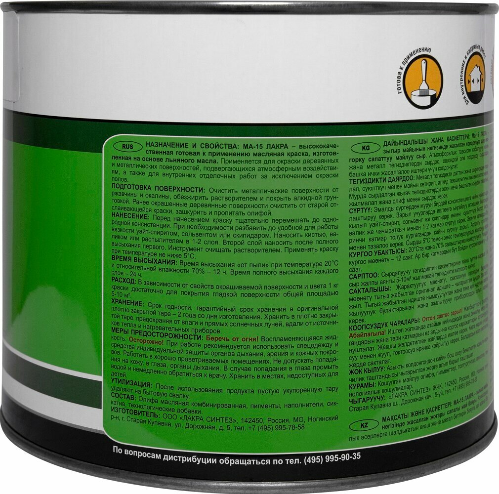 Краска МА-15 зеленый Лакра 0,9 кг