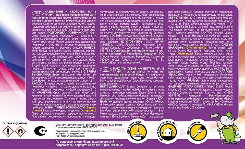 Лакра Краска МА-15 Зеленый 0,9кг Лк-00004624 .