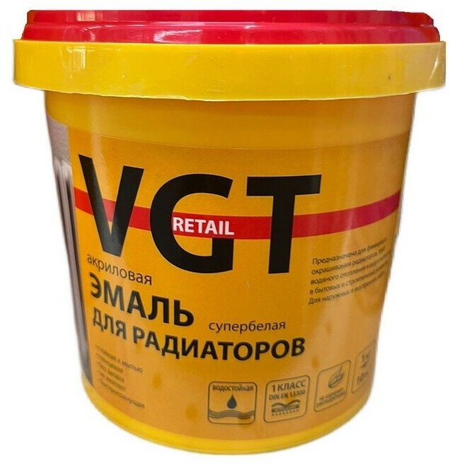 ВГТ эмаль акриловая для радиаторов глянцевая супербелая (1кг) / VGT эмаль акриловая для радиаторов глянцевая супербелая внутри и снаружи ВД-АК-1179 (1