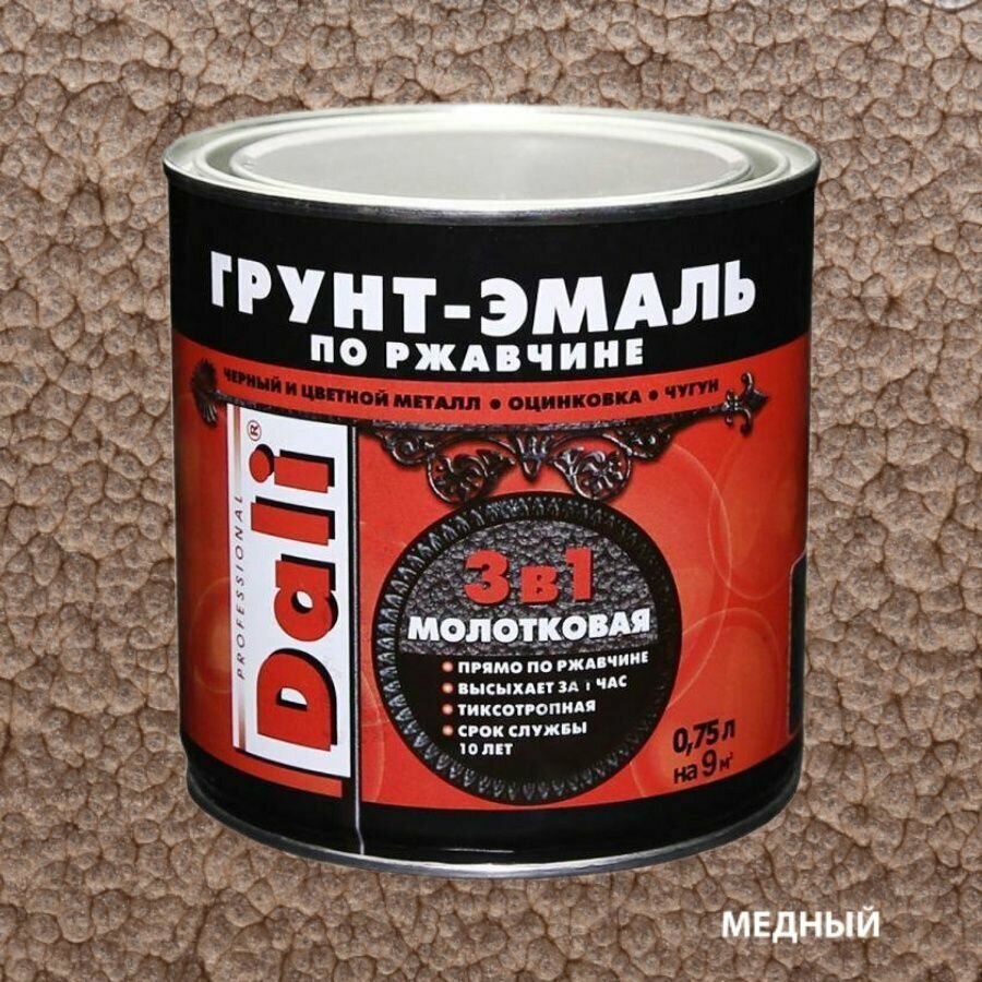 Грунт-Эмаль по Ржавчине 3 в 1 Dali 0.75л Бронзовый с Молотковым Эффектом / Дали Грунт-Эмаль.
