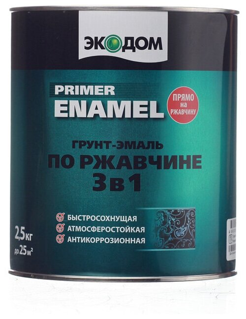Грунт-эмаль по ржавчине 3в1 экодом (RAL 9005 черный / 2.5кг)