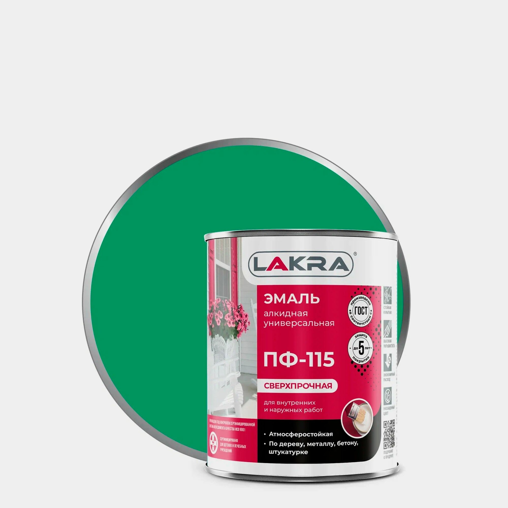 Эмаль ПФ-115 универсальная Лакра глянцевая, зеленая, 2,8кг