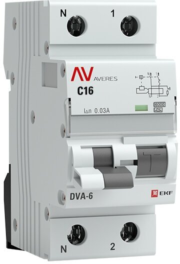 Дифференциальный автомат EKF Averes Dva-6, 1P+N, 16А, C, 30мА, A, 6кА, SQ rcbo6-1pn-16C-30-a-av .