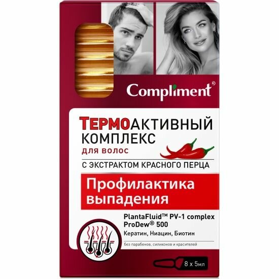 Купить Compliment Термоактивный комплекс для волос с экстрактом красного перца Профилактика выпадения (ампулы), 5 мл, 8 шт.