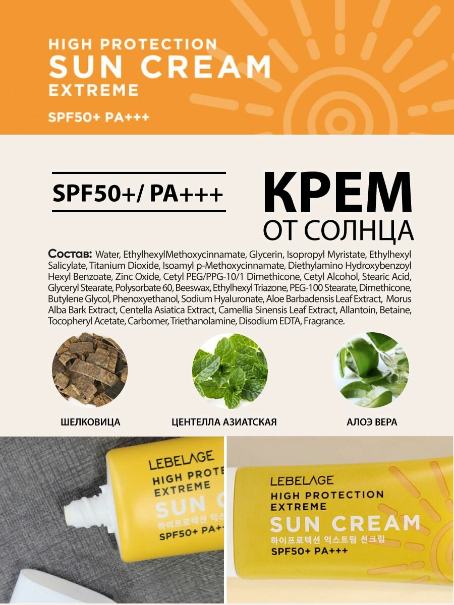 Ультразащитный крем от солнца с высоким фактором SPF50+PA+++, 30мл, LEBELAGE