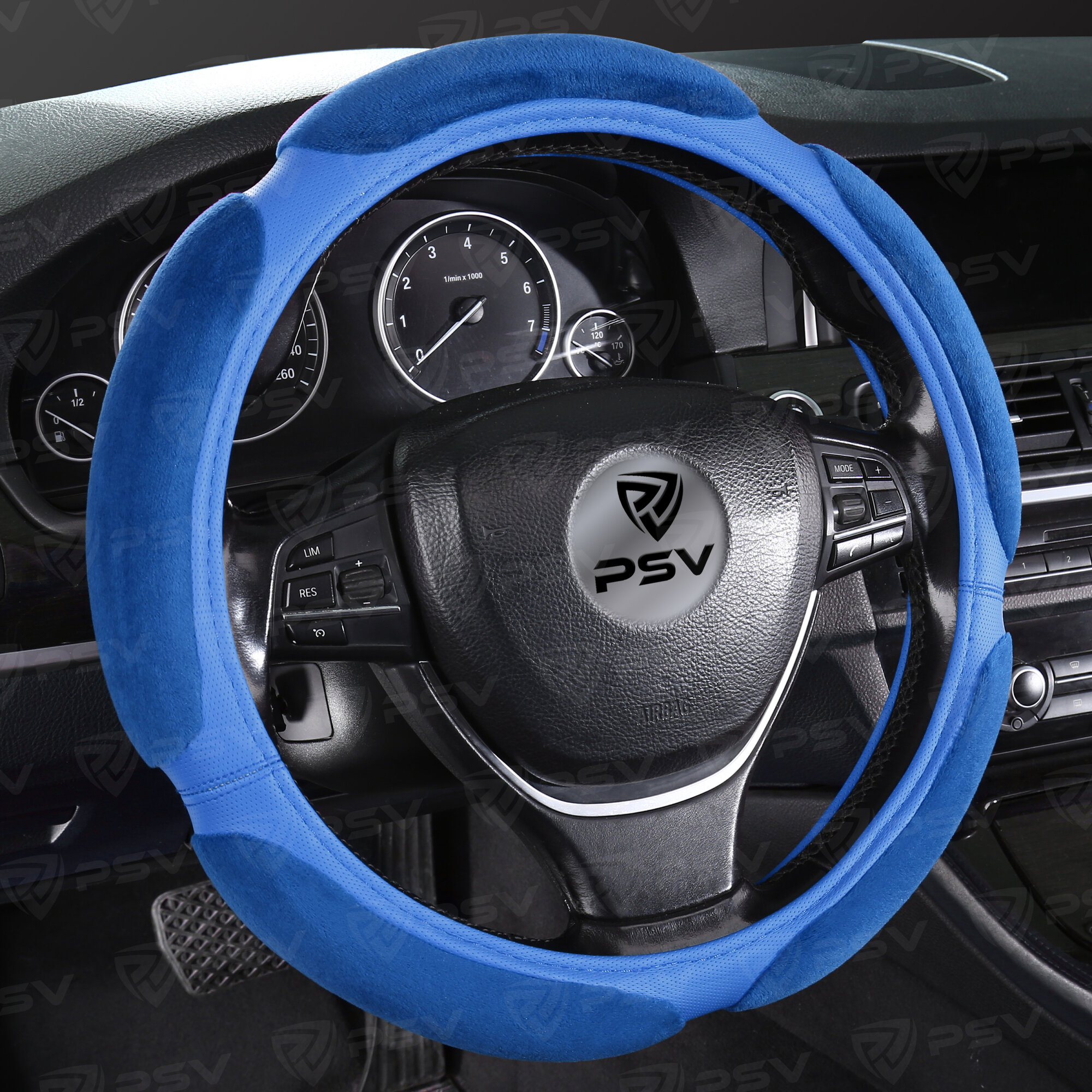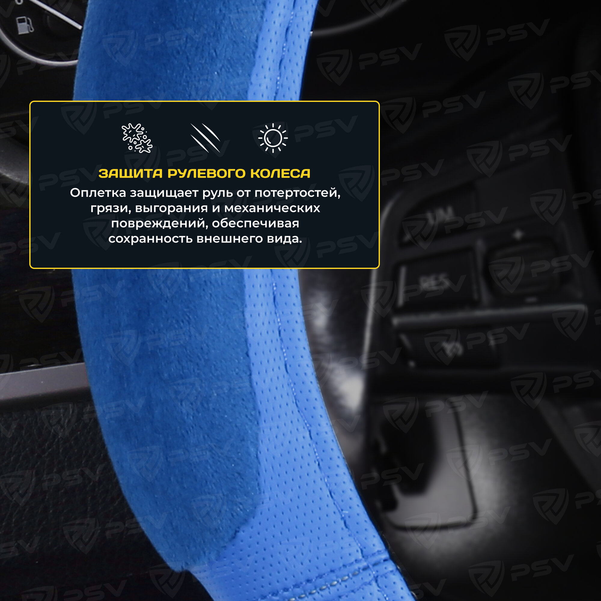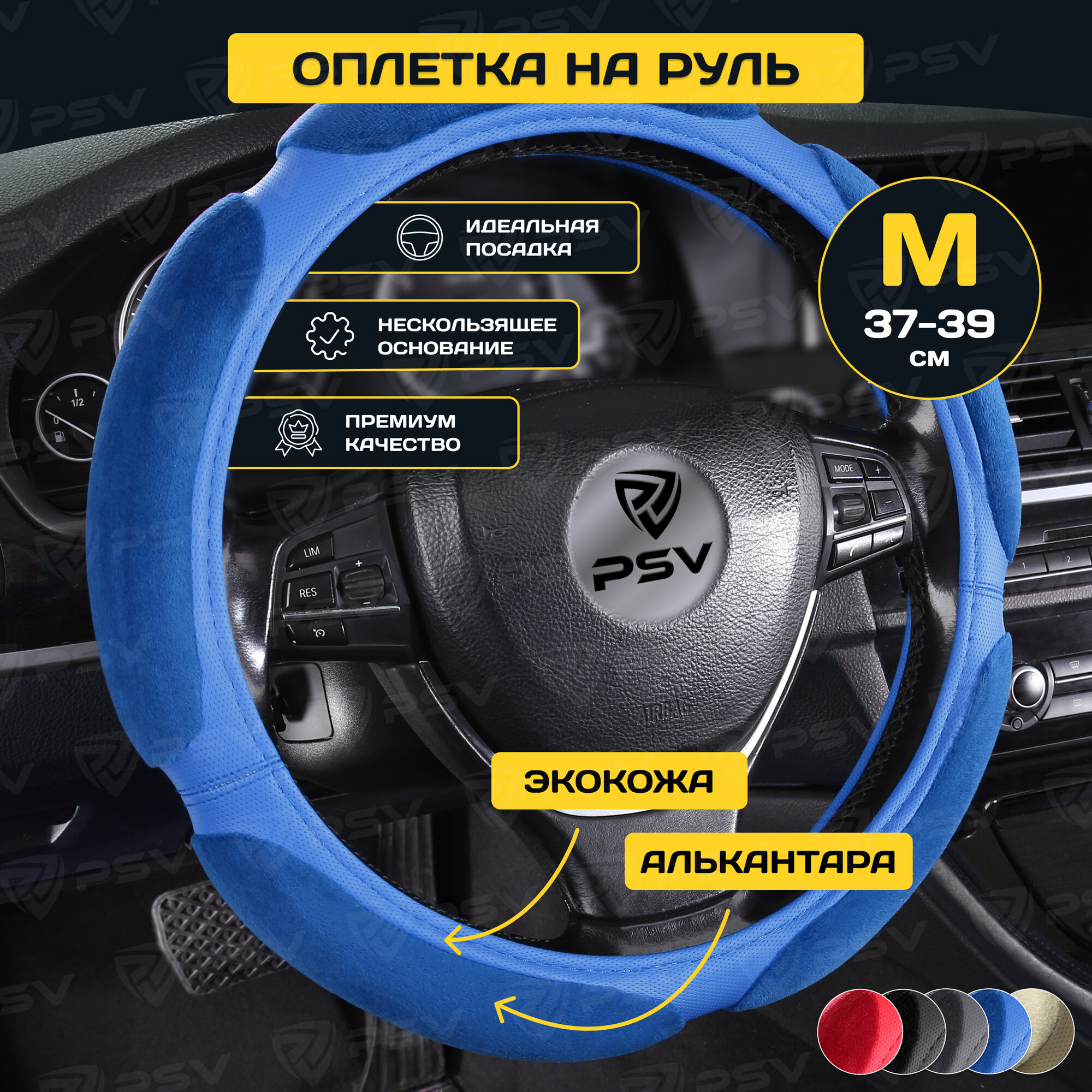 Оплетка на руль PSV RACE SUPER (Черно-Синий) M, экокожа + алькантара