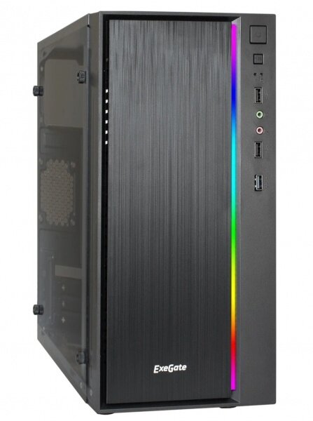 Корпус Minitower ExeGate mEVO-9301-NPX600 (mATX, БП 600NPX с вент. 12см, с окном, 2*USB+1*USB3.0, HD аудио, черный с RGB подсветкой)