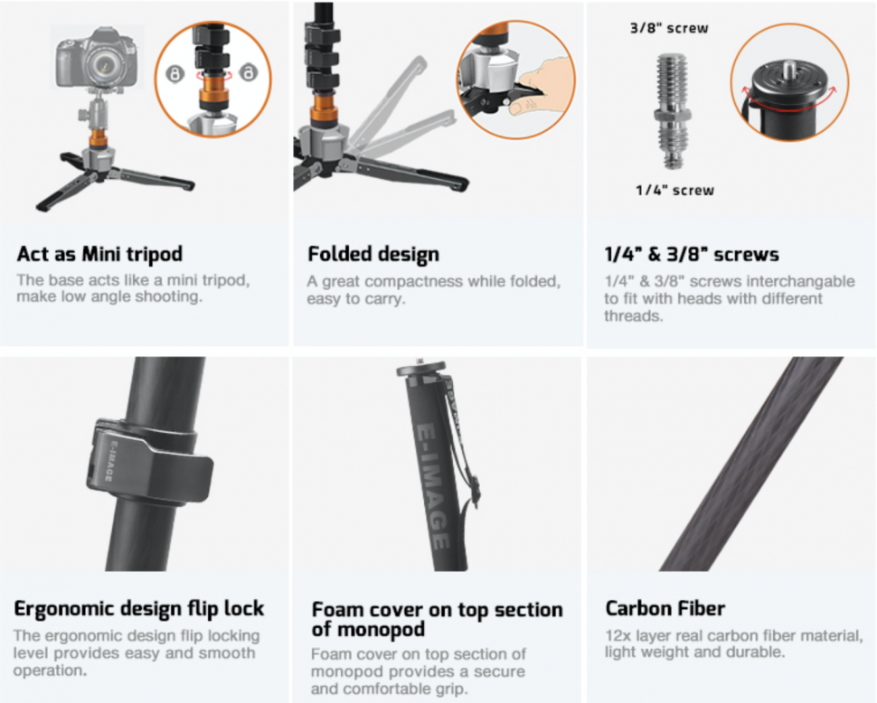 Купить Монопод E-image MFC700+610FH с видеоголовой (198см/3кг/2240г)