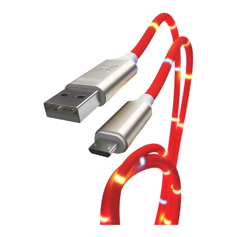 Кабель USB-микро красный светомузыка 1м WIIIX (CB930-UMU-2A-MUSIC-10R)