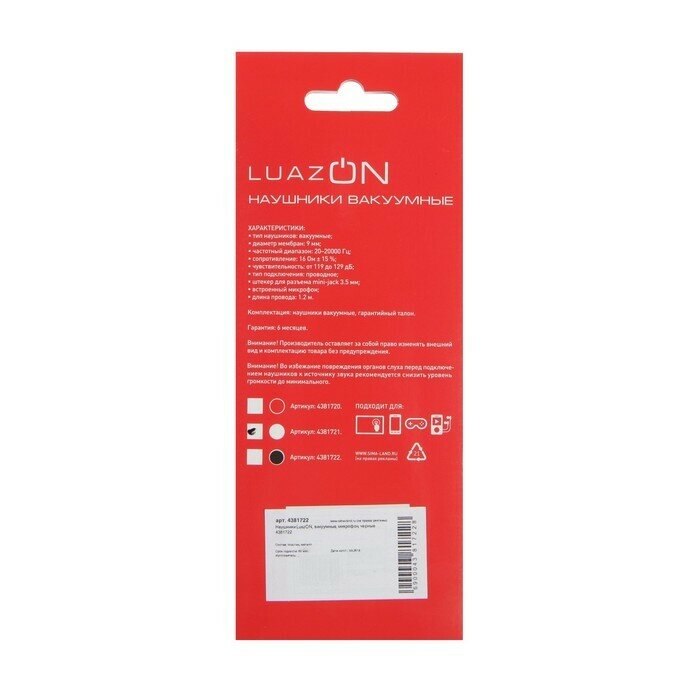 Наушники LuazON W-13, вакуумные, микрофон, черные интересное:
