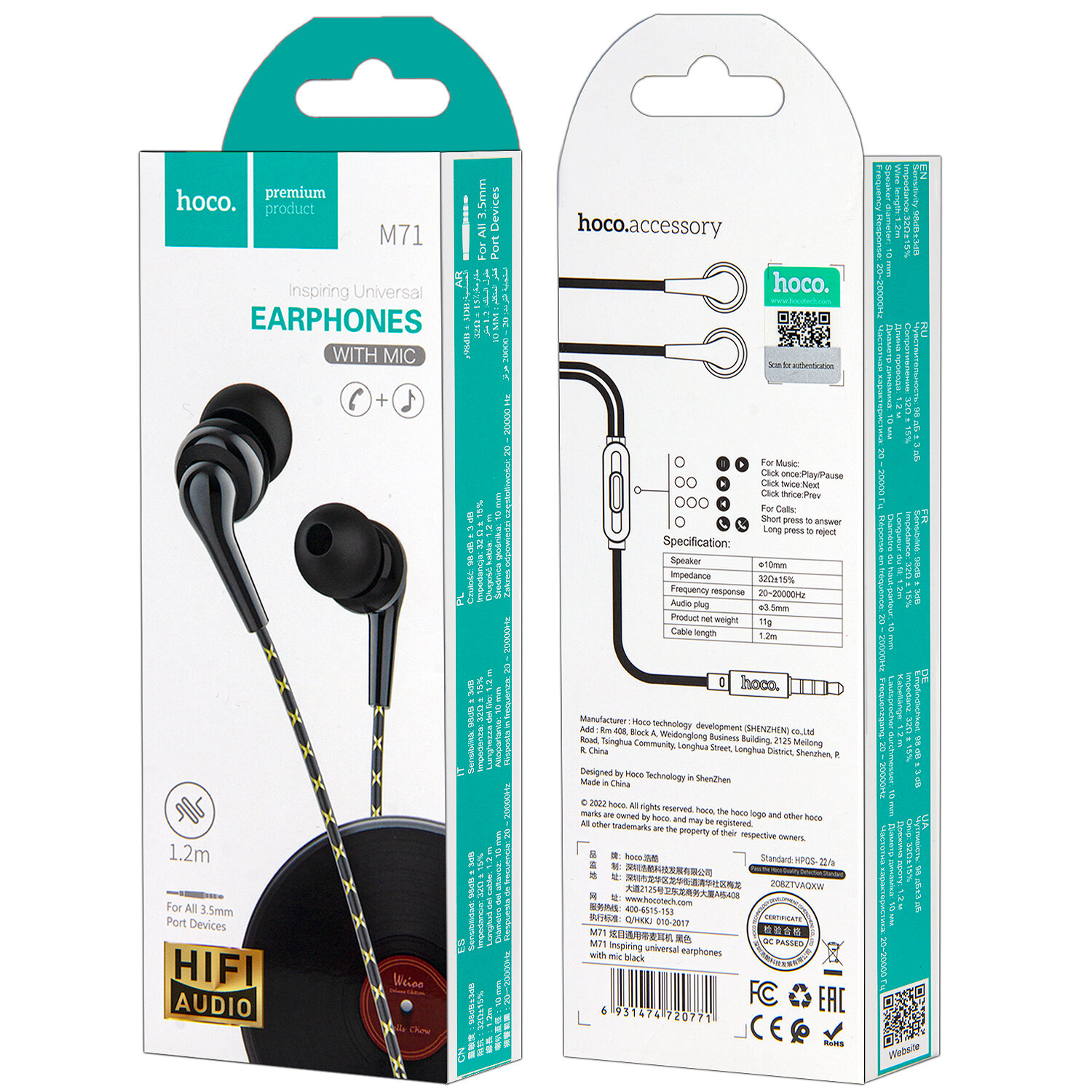 Ниже Вы можете прочитать отзывы на Наушники M71 Inspiring universal earphones with mic, HOCO, вакуумные с микрофоном, черные, ознакомится с подробными характеристиками, посмотреть интересные обзоры и фотографии на Наушники M71 Inspiring universal earphones with mic, HOCO, вакуумные с микрофоном, черные.