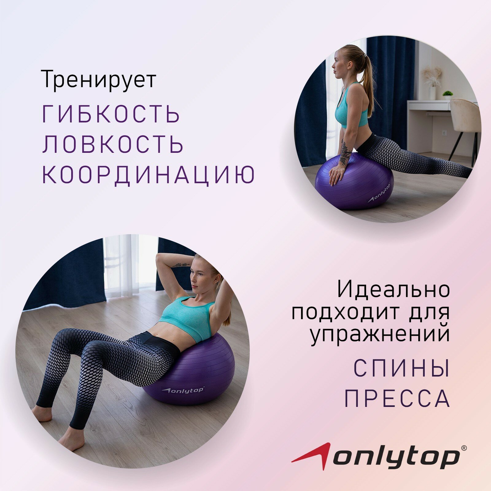 ONLYTOP Фитбол ONLYTOP, d=65 см, 900 г, антивзрыв, цвет фиолетовый