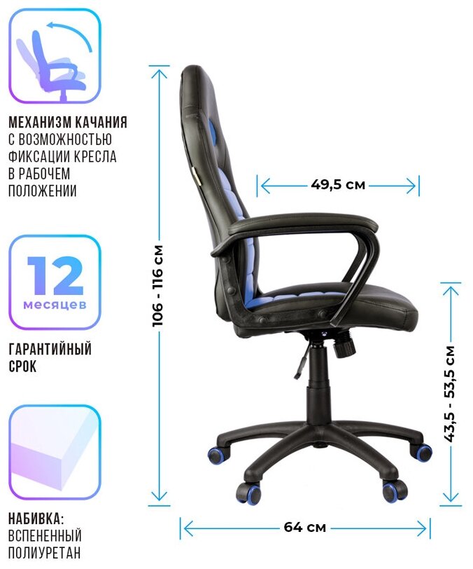 Компьютерное игровое геймерское офисное кресло (стул) Helmi HL-S06 "Highway", экокожа/ткань черная/синяя