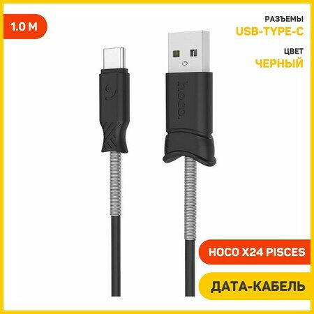 Дата-кабель Hoco X24 Pisces USB-Type-C (с пружиной) 1 м, черный