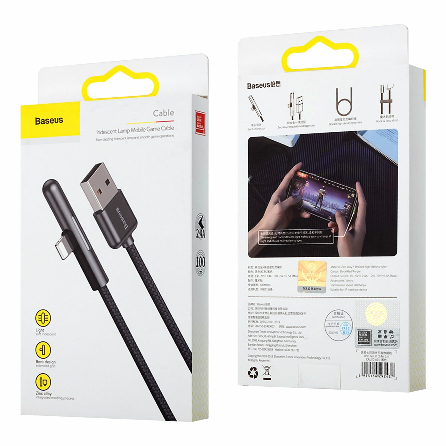 Кабель USB BASEUS Iridescent Lamp, USB - Lightning, 2.4А, 1 м, черный, игровой
