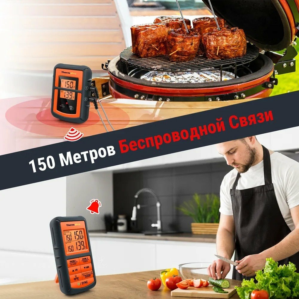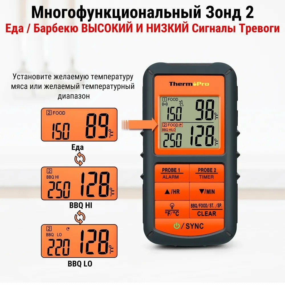 Двухканальный беспроводной кулинарный термометр для мяса Thermopro TP-20C интересное: