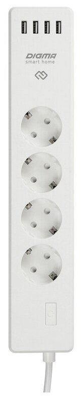 Купить Сетевой фильтр DIGMA DiPlug Strip 40, 4 розетки, 1.8 м, с/з, 10А / 2300 Вт белый