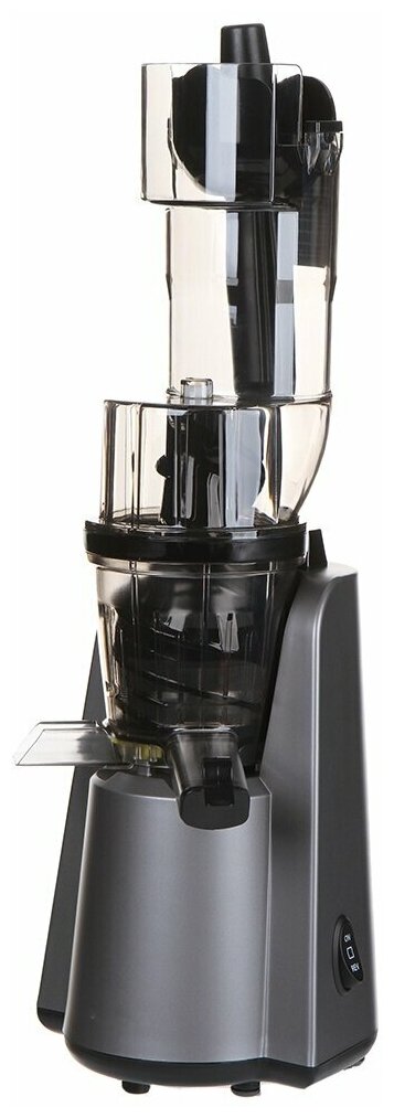 | Отзыв: | Не надо мельчить продукты. Жмых выходит практически сухим. Все детали съёмные, для мытья удобно. По сравнению с центробежной ,она кажется медлительной, тем самым можно понять, что процесс получения сока делается по другой технологии. Овощи пока не пробовали. С цитрусовыми ,яблоками, гранатом справляется отлично. |