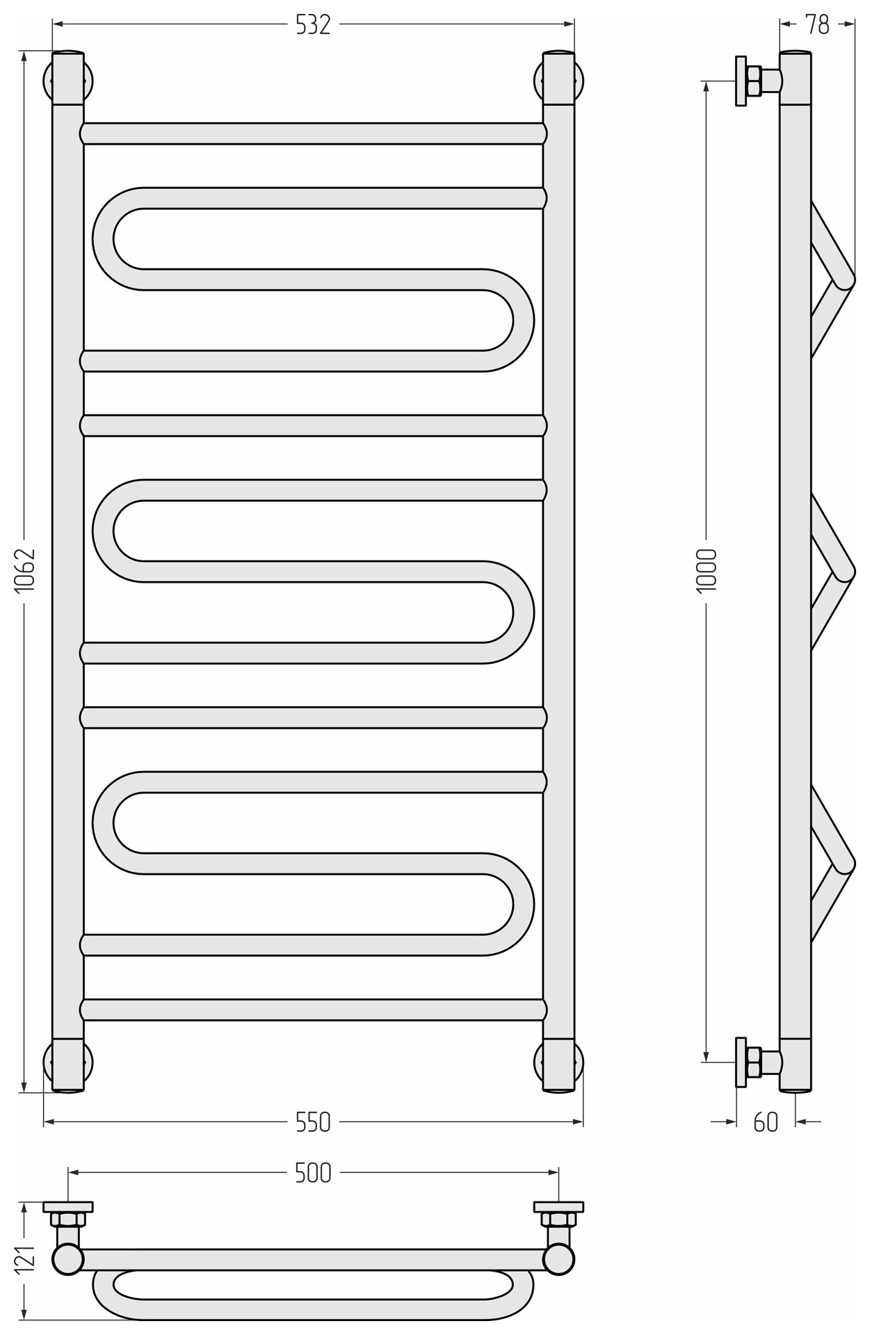 Сунержа Полотенцесушитель водяной Сунержа Элегия+ 1000х500, с защитой без покрытия