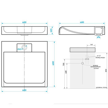 | Размеченные отверстия под смеситель | 1 |