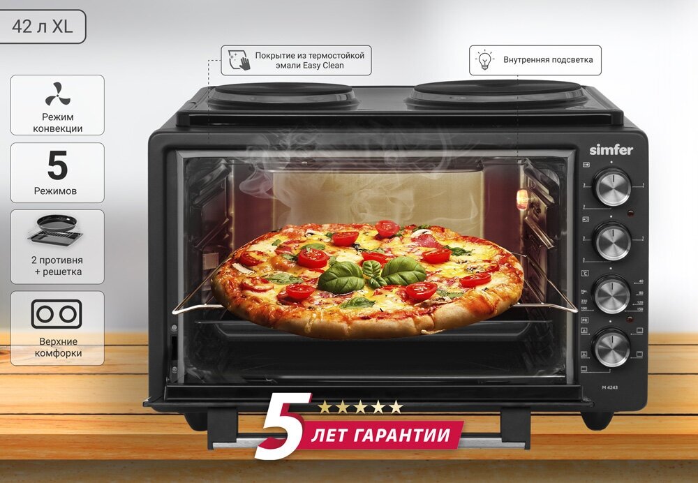 Мини-печь Simfer M4243 серия Albeni Plus, 5 режимов работы, с конфорками