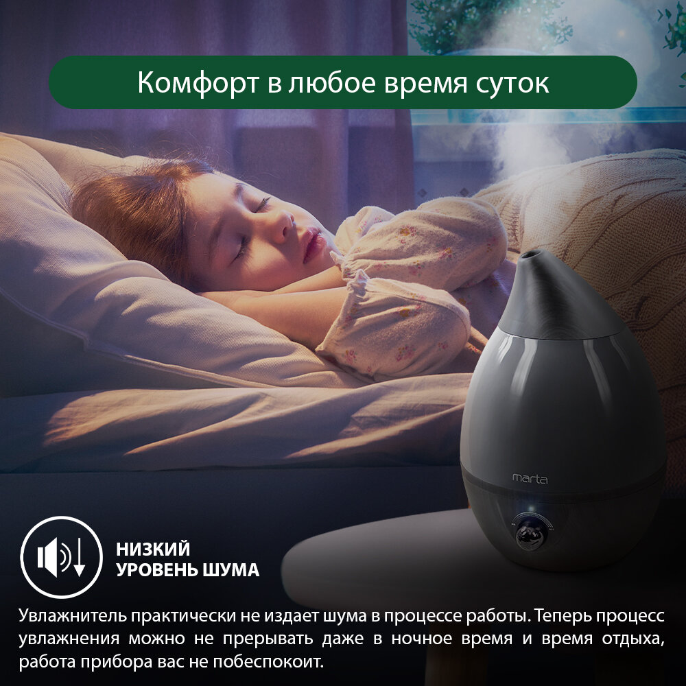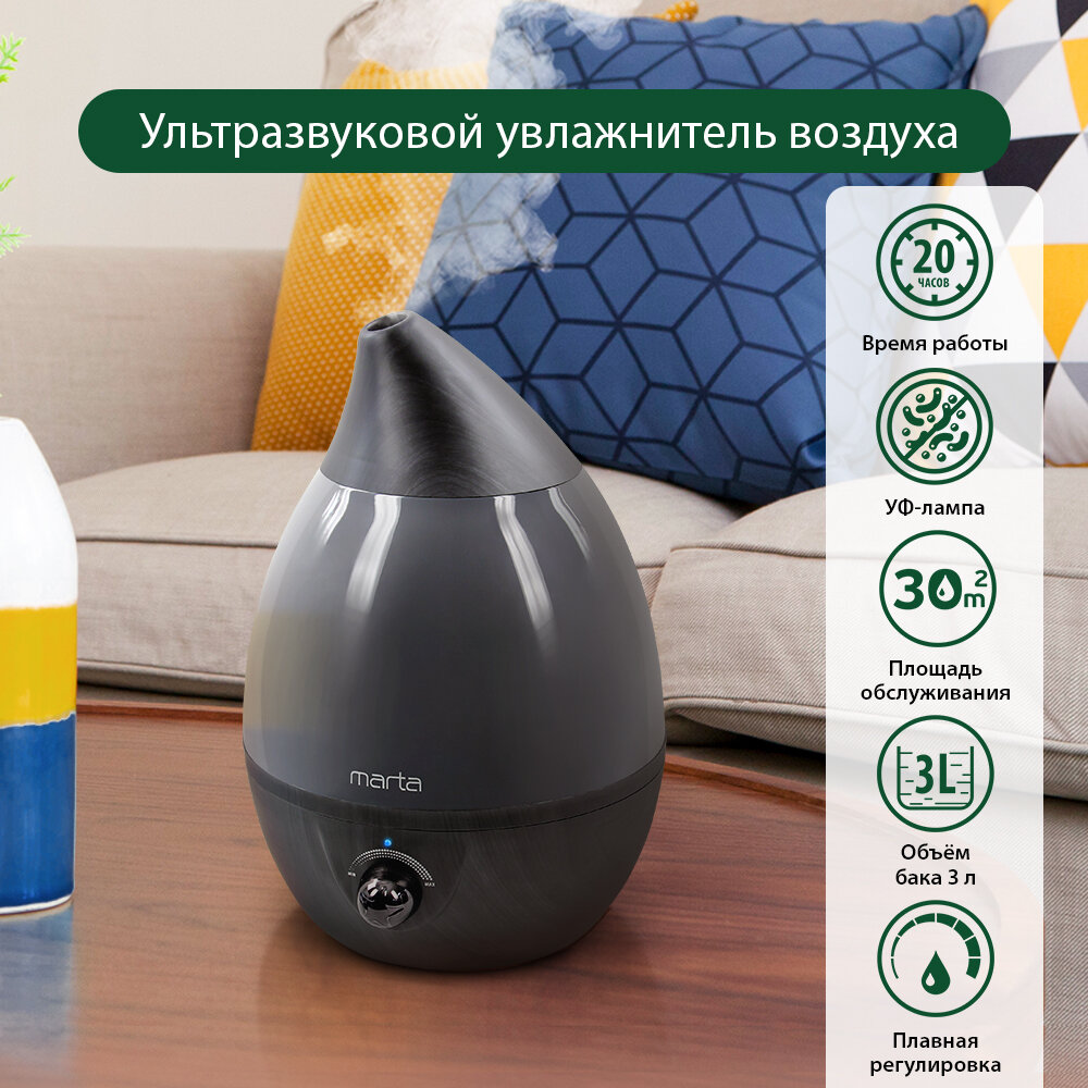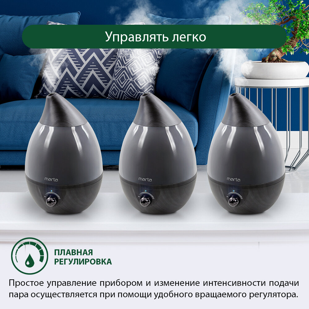Увлажнитель воздуха с антивирусной УФ-лампой MARTA MT-2377 хром/черное дерево интересное: