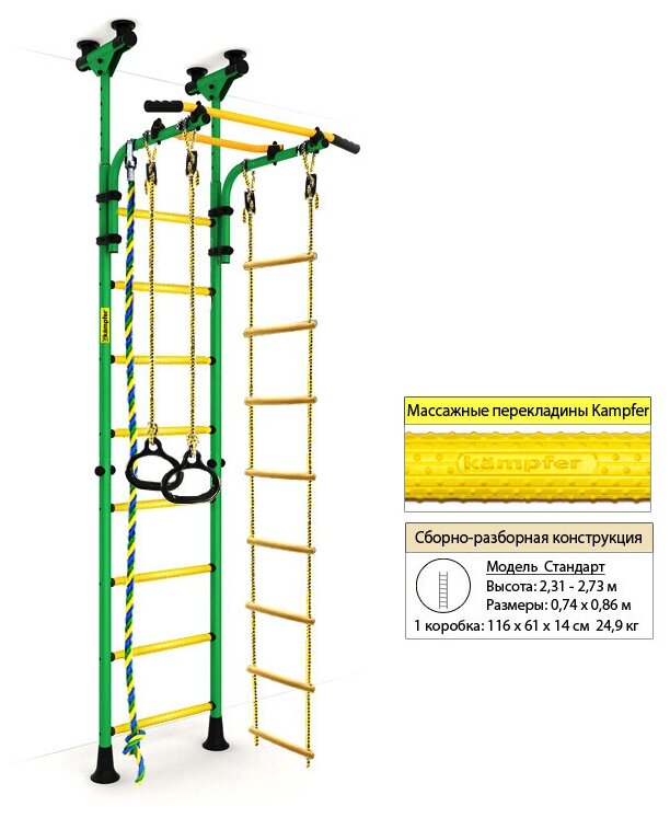 Шведская стенка Kampfer Strong kid Ceiling (зеленый/желтый Стандарт) интересное: