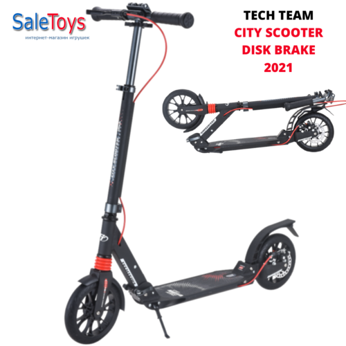 Самокат складной Tech Team City Scooter Disk Brake 2022 чёрный с красным