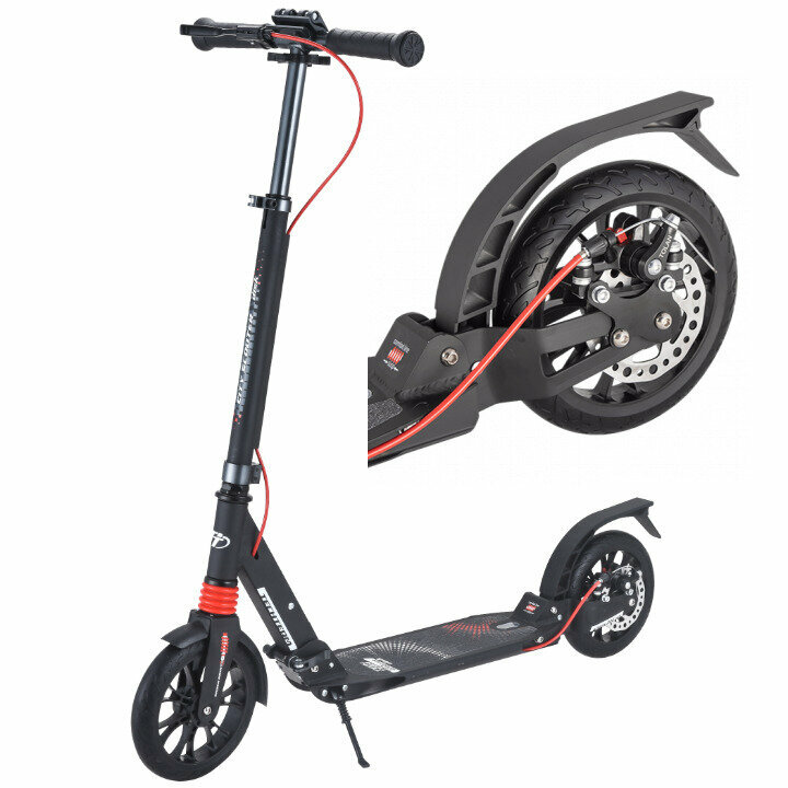 | Плюсы: | Отличный самокат! Ручной тормоз, большие колеса, дисковые тормоза, регулировка вылета, подножка, удобно складывать. Катается доча, 8 лет и папа с мамой ;) |