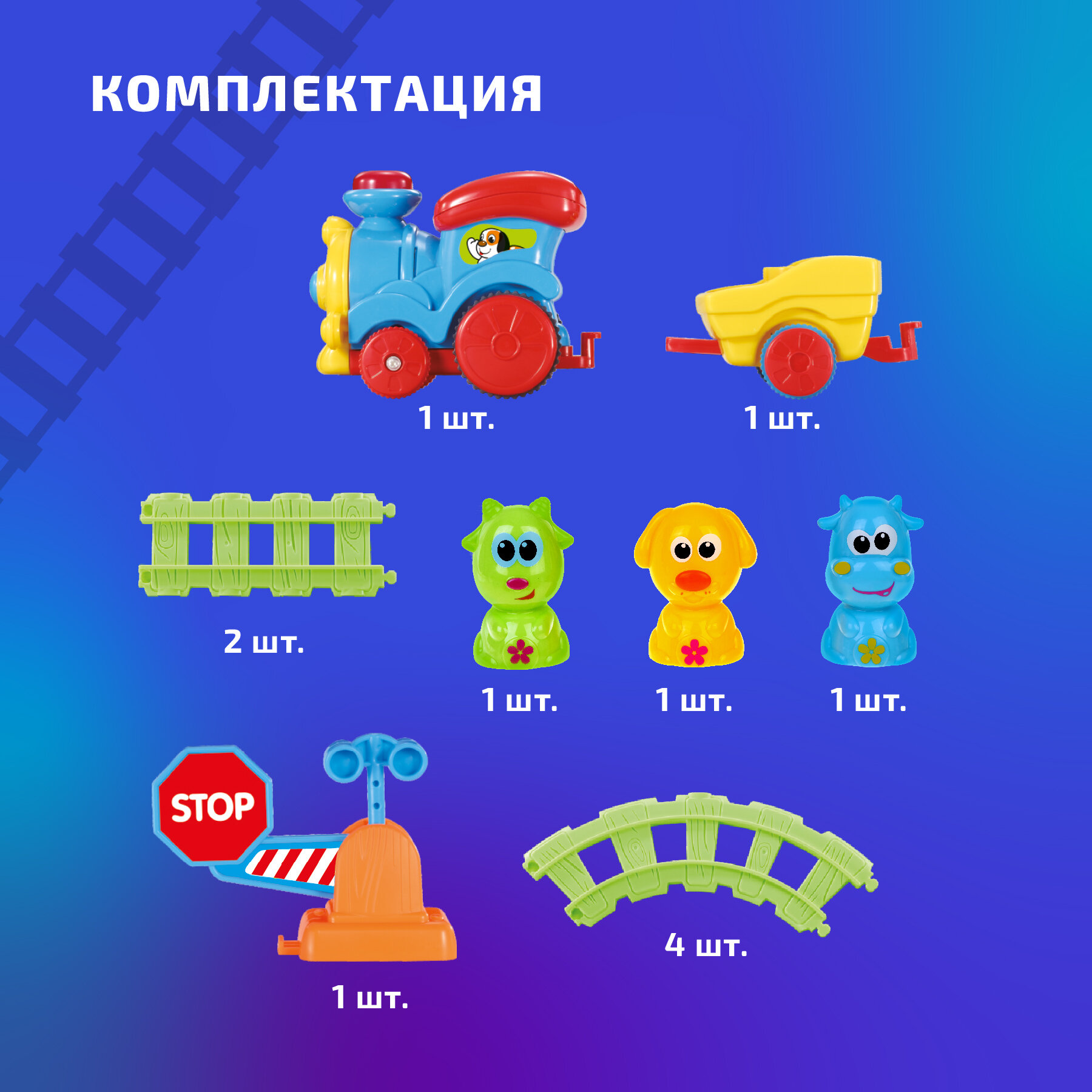 | Подробная комплектация | паровоз, вагон, шлагбаум, фигурки животных - корова, коза, собака |