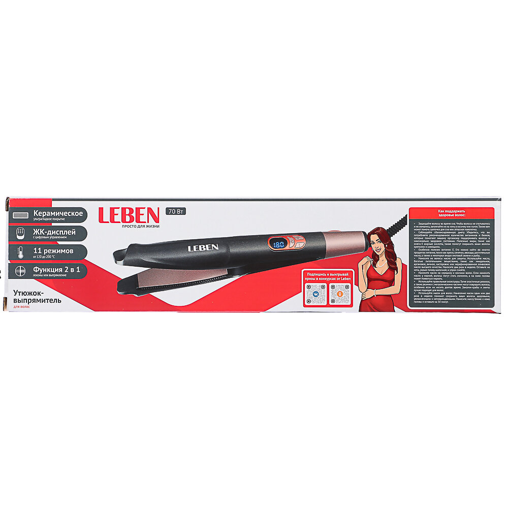 Ниже Вы можете прочитать отзывы на LEBEN Утюжок-выпрямитель для волос с изогнутыми пластинами, керамическое покрытие, ознакомится с подробными характеристиками, посмотреть интересные обзоры и фотографии на LEBEN Утюжок-выпрямитель для волос с изогнутыми пластинами, керамическое покрытие.