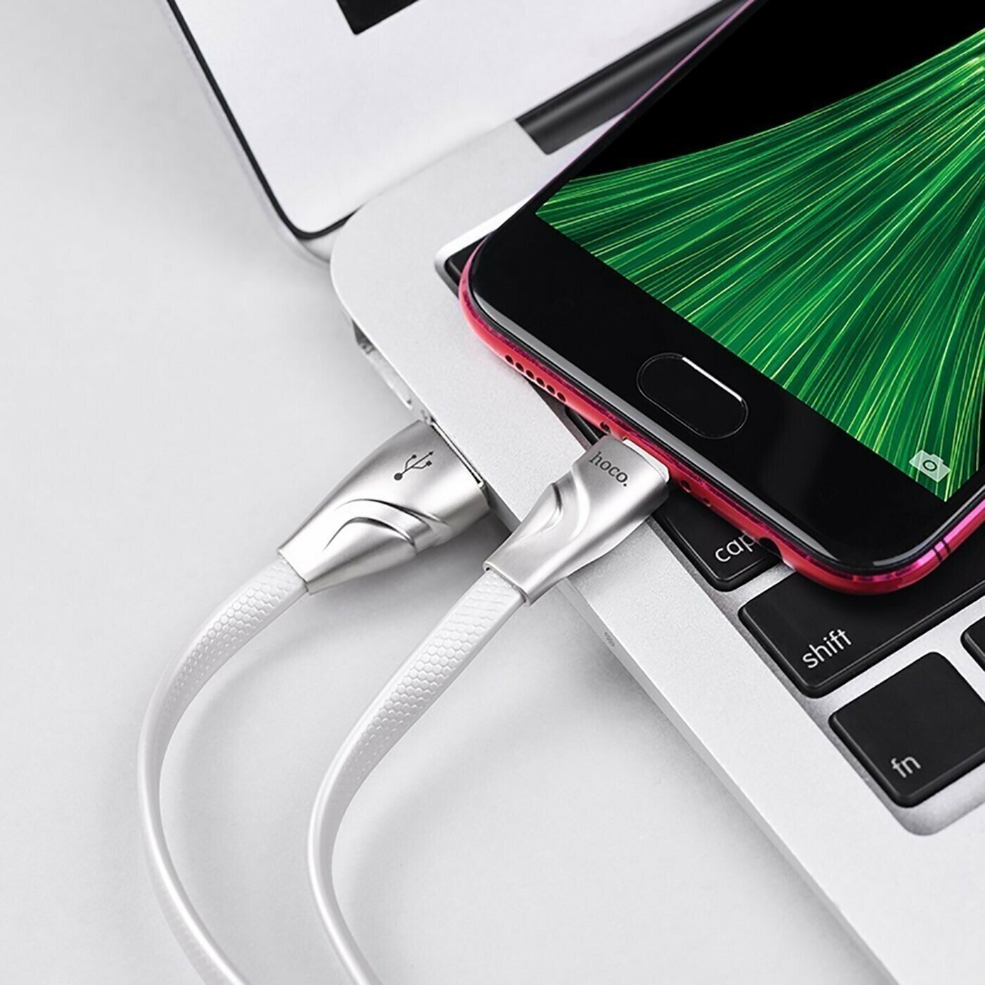 Кабель Hoco U57 USB microUSB 2 4 А 1 2 м плоский белый