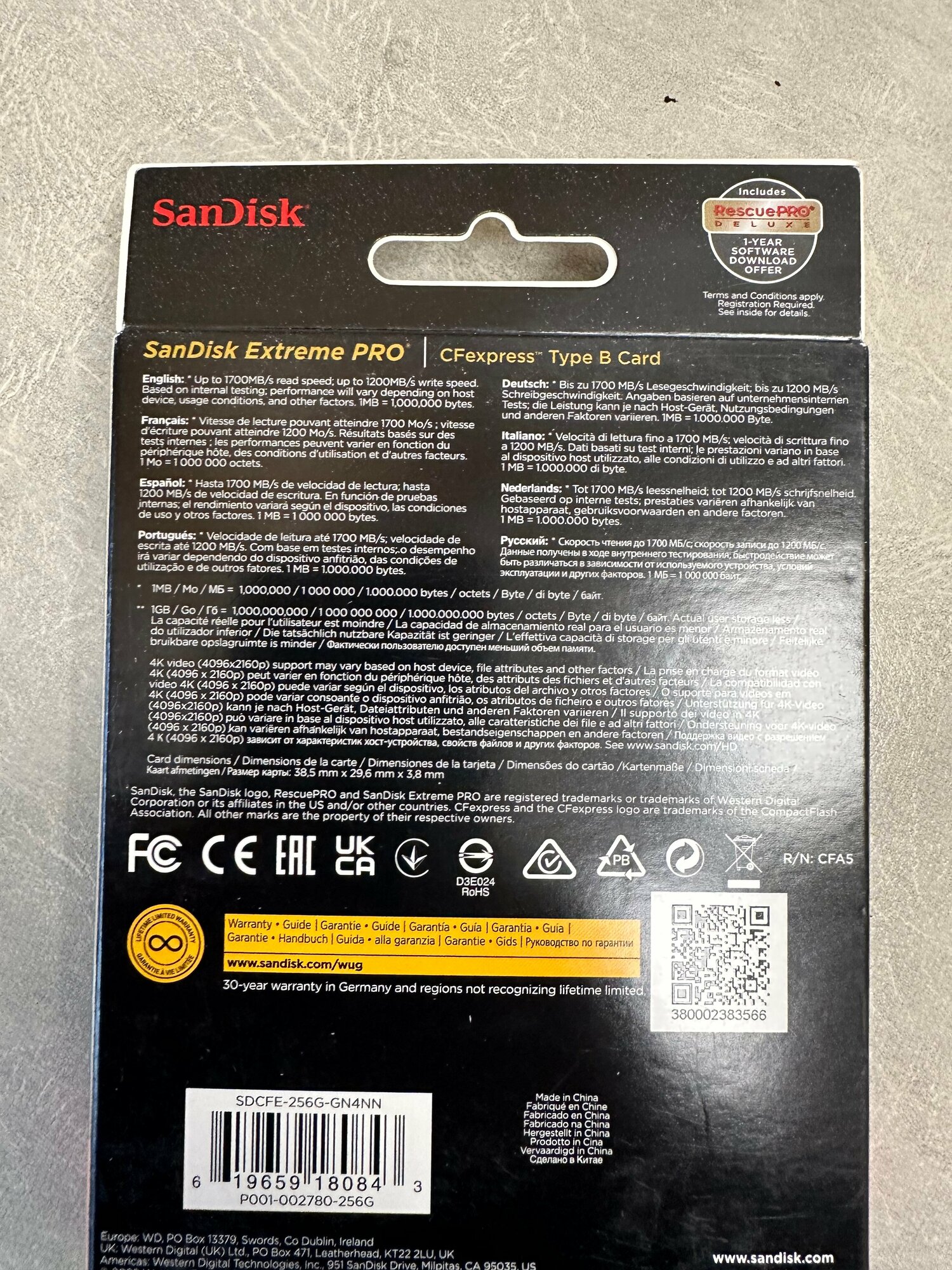 Ниже Вы можете прочитать отзывы на Карта памяти SanDisk CFexpress Type B 256 ГБ Class 10, R/W 1700/1200 МБ/с, ознакомится с подробными характеристиками, посмотреть интересные обзоры и фотографии на Карта памяти SanDisk CFexpress Type B 256 ГБ Class 10, R/W 1700/1200 МБ/с.