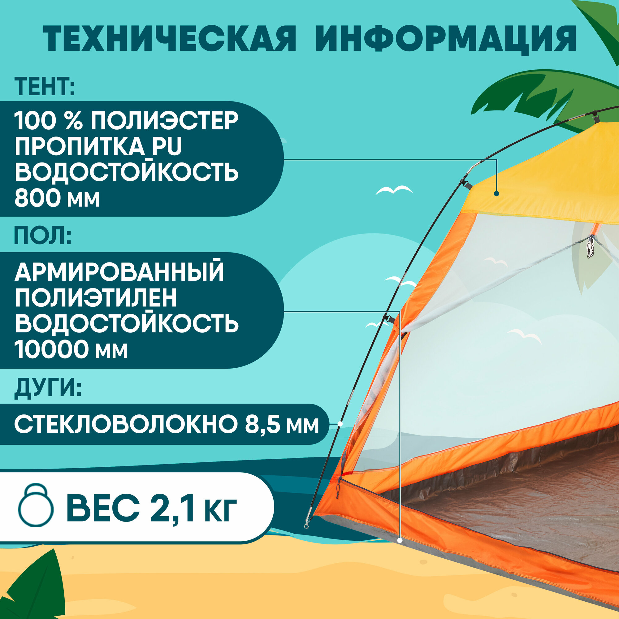 | Водостойкость тента | 800 мм вод. ст. |