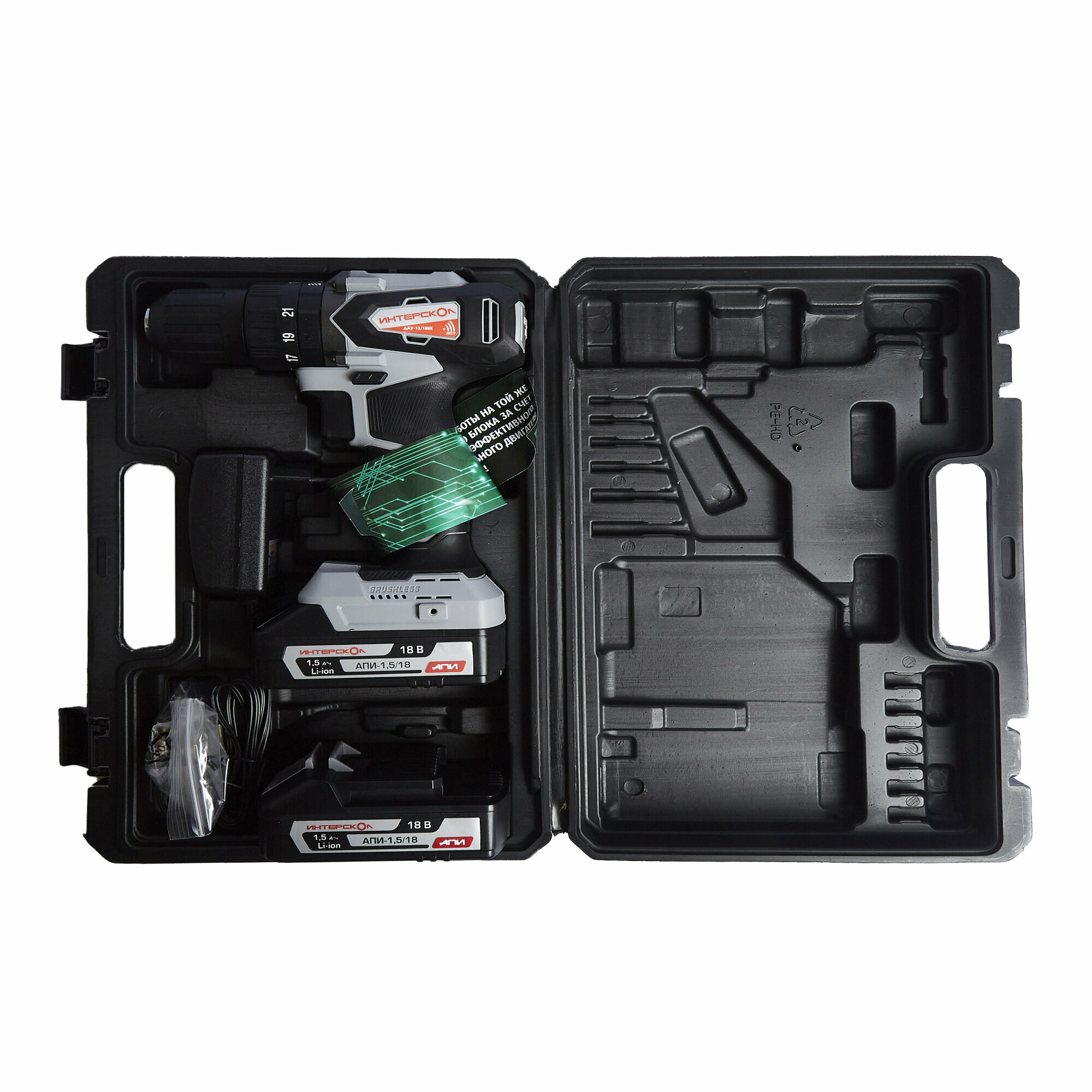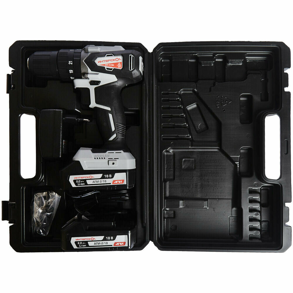 Дрель-шуруповерт аккумуляторная бесщеточная Интерскол ДАУ-13/18ВК, 18 В Li-ion 2х1.5 Ач