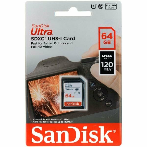 Купить Карта памяти SanDisk Ultra SDXC 64 ГБ Class 10, UHS-I, R/W 120/10 МБ/с