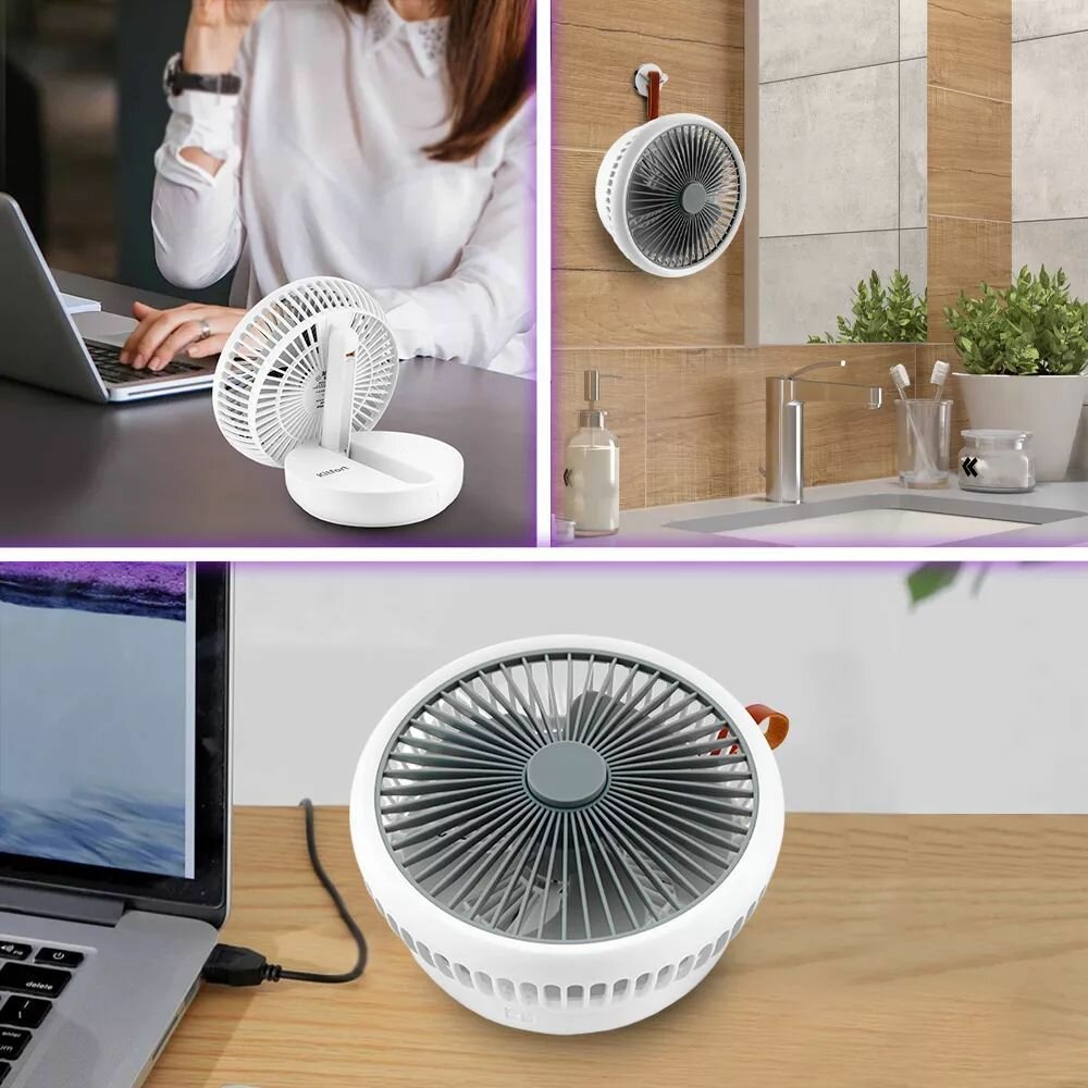 | Плюсы: | Этот портативный и настольный вентилятор - мое спасение в жару. Он приятного цвета, работает тихо, всего 4 скорости. Подзаряжается через type c, провод идёт в комплекте, но и есть usb через который можно подзарядить телефон, что тоже плюс. Если полностью зарядить, то хватает на 6 часов где-то, на первой скорости ( но этой скорости мне и так хватает, чтобы освежиться ). Также его можно сложить и взять с собой, что тоже очень круто. |