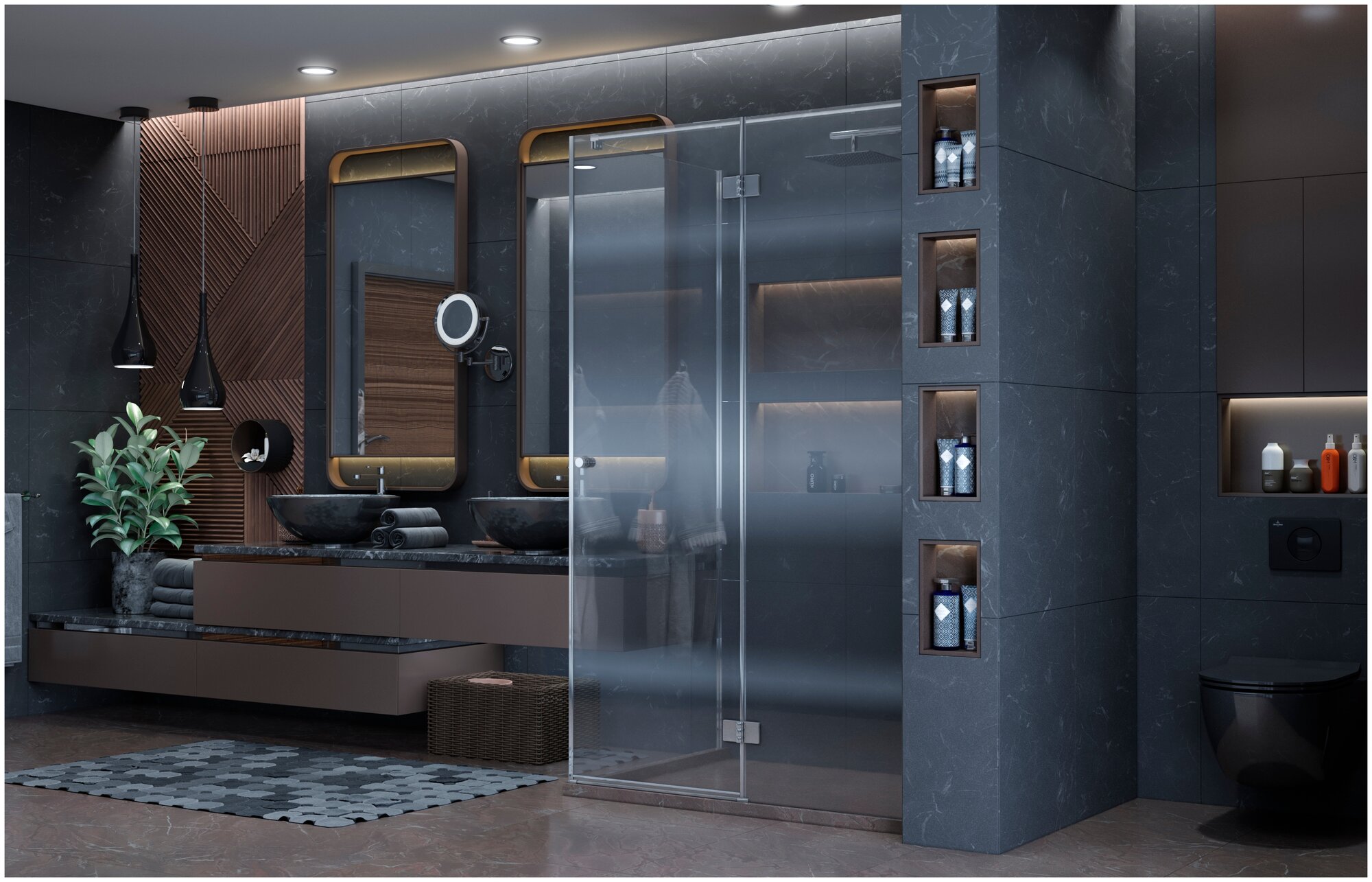 Душевой уголок Vincea city vsr-5ct9011clb, 1100 900, черный, стекло прозрачное vsr-5ct9011clb