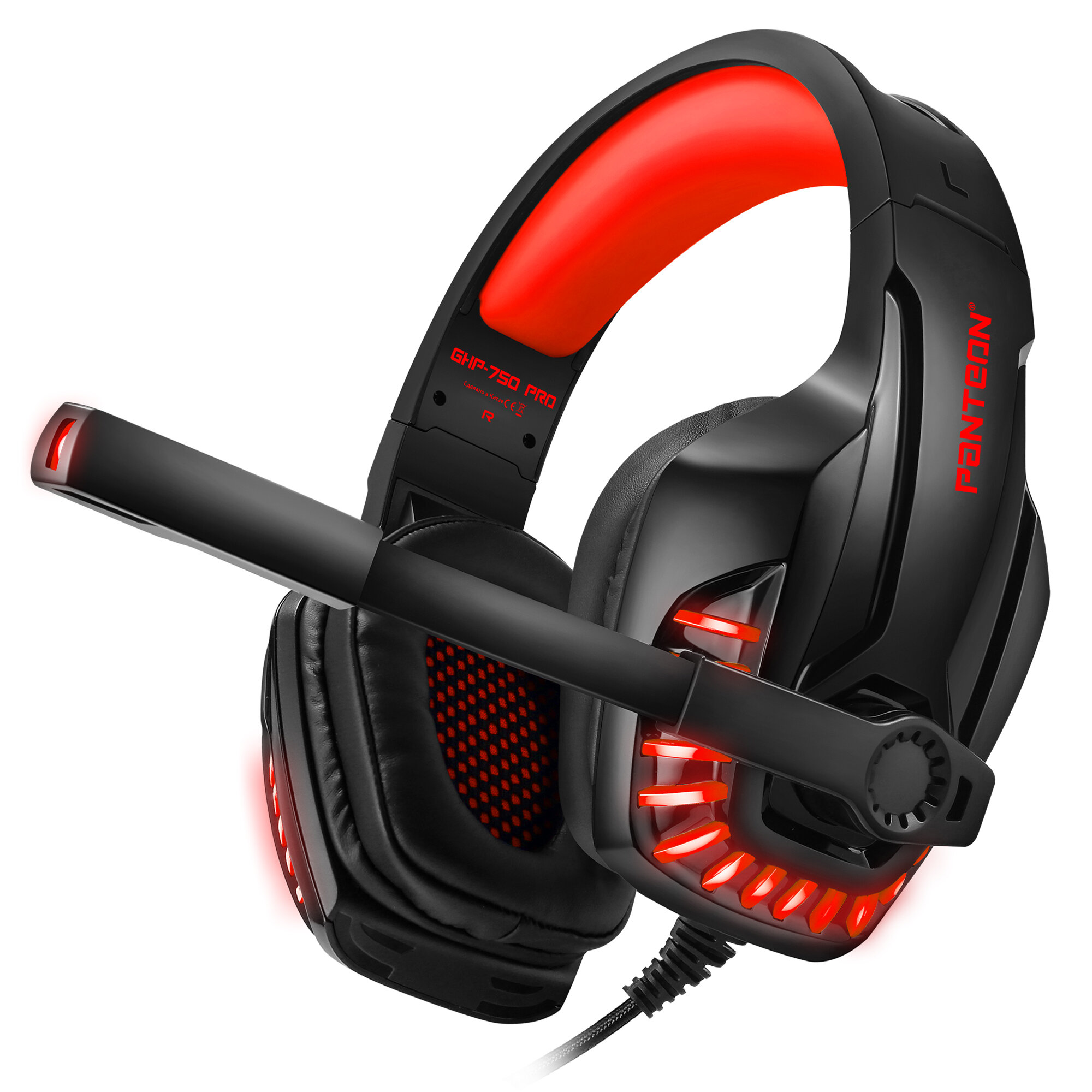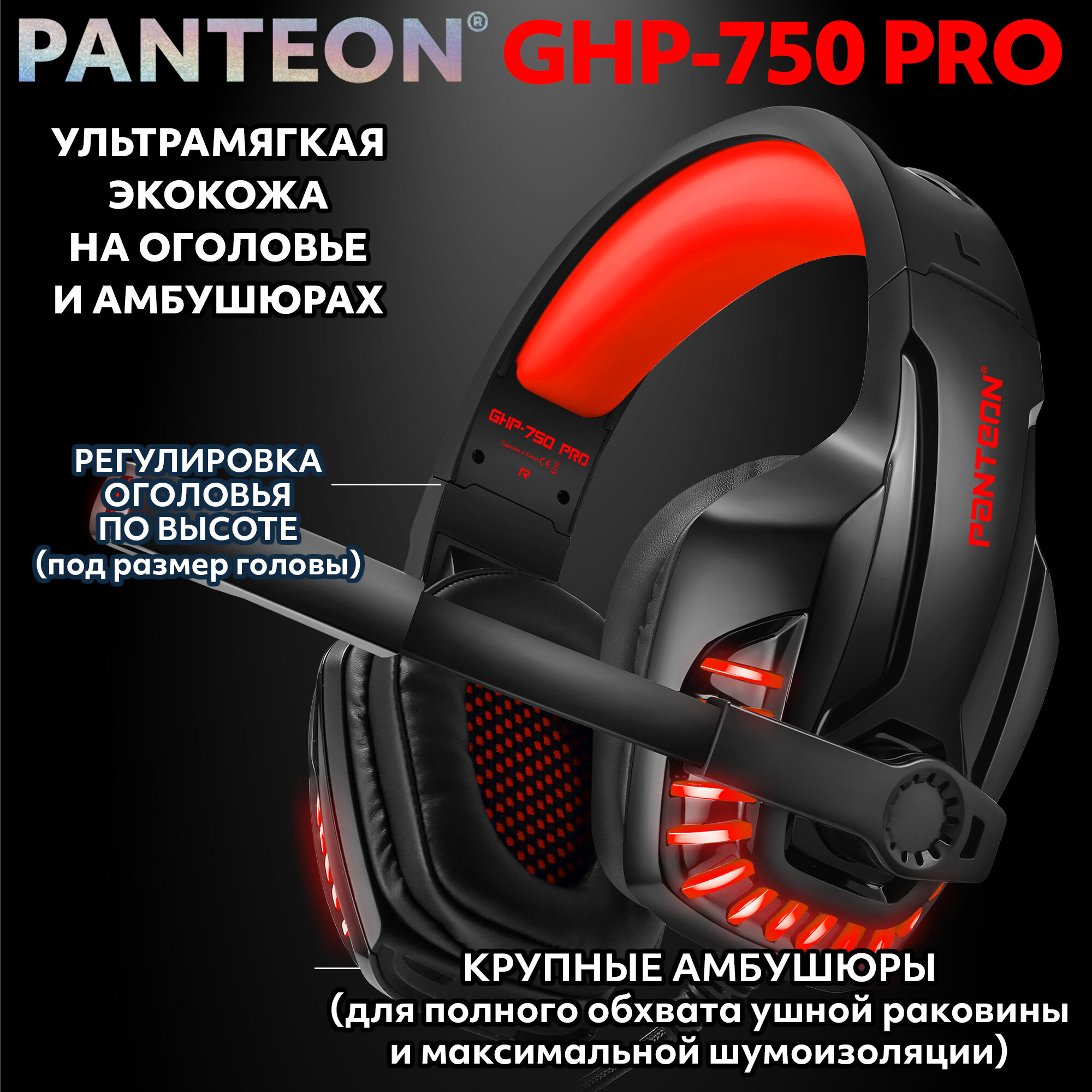 Купить Наушники игровые с микрофоном JETACCESS PANTEON GHP-750 PRO с LED-подсветкой, 7.1 и виброоткликом красные