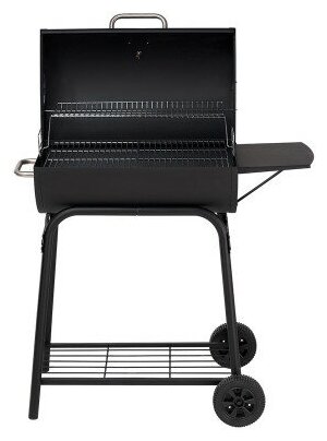 | Плюсы: | Собирается довольно легко, площадь жарки хорошая, удобная полочка подогрева блюд, с колесами удобно перекатывать гриль |