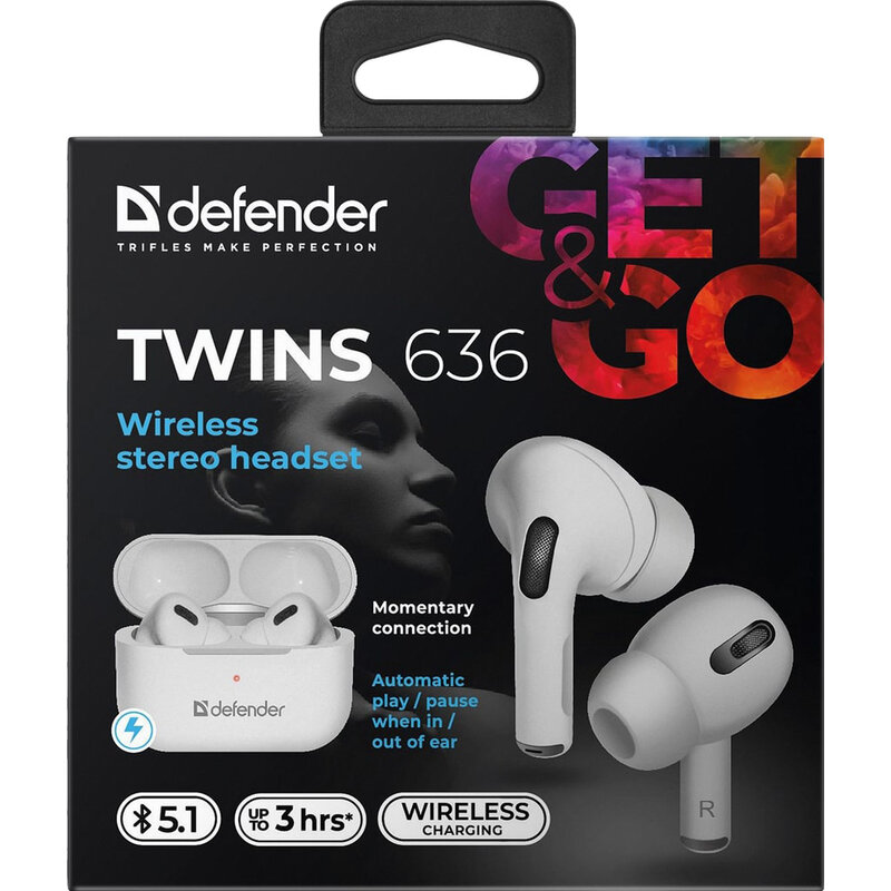 Defender Беспроводная гарнитура Twins 636 белый,TWS Pro, Bluetooth