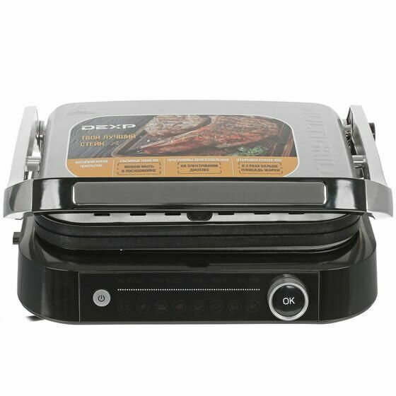 Гриль DEXP MGL-2000S [2100 Вт, экран, таймер, антипригарное покрытие, сменные панели]
